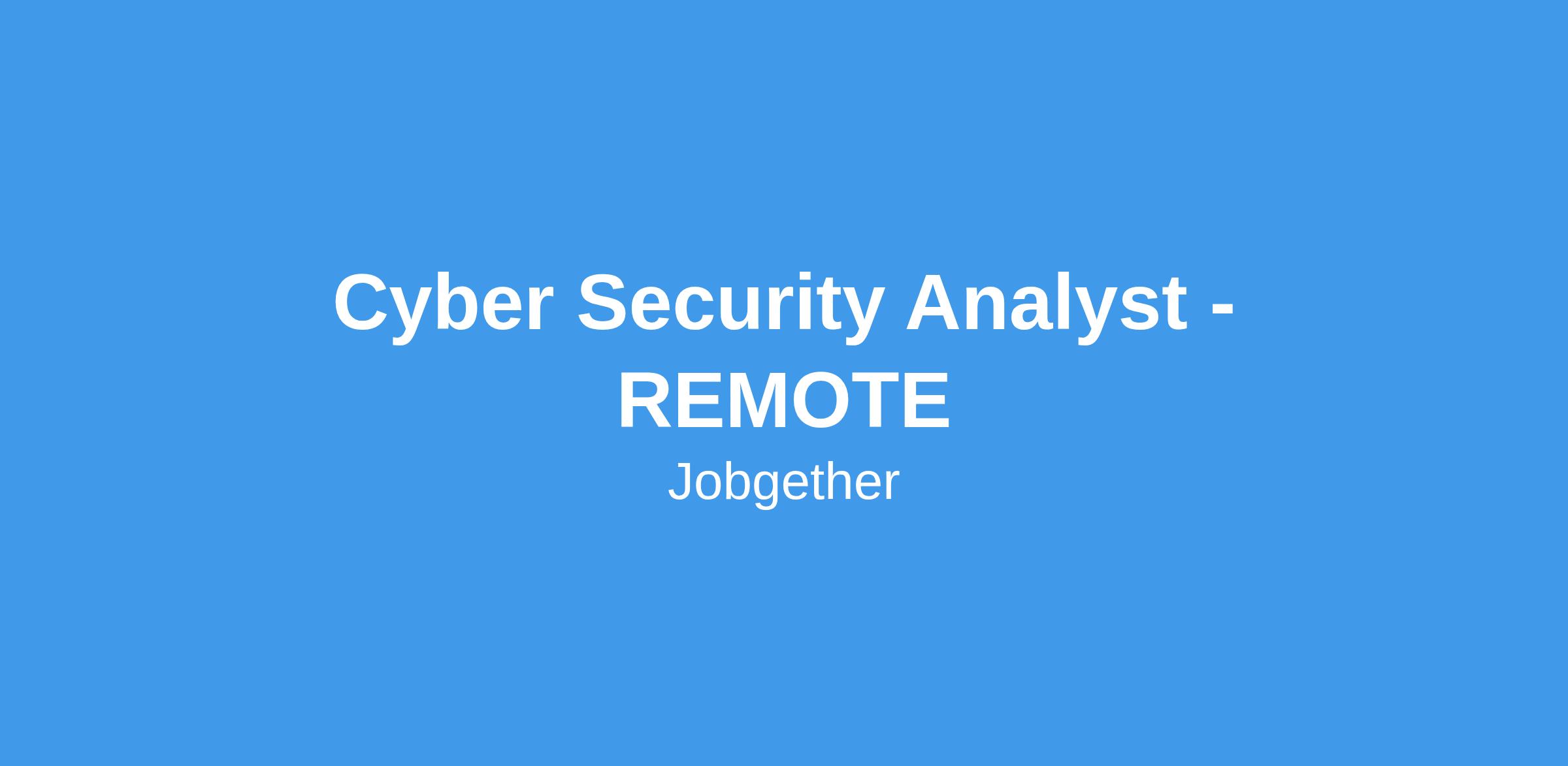 Cyber Security Analyst - REMOTE