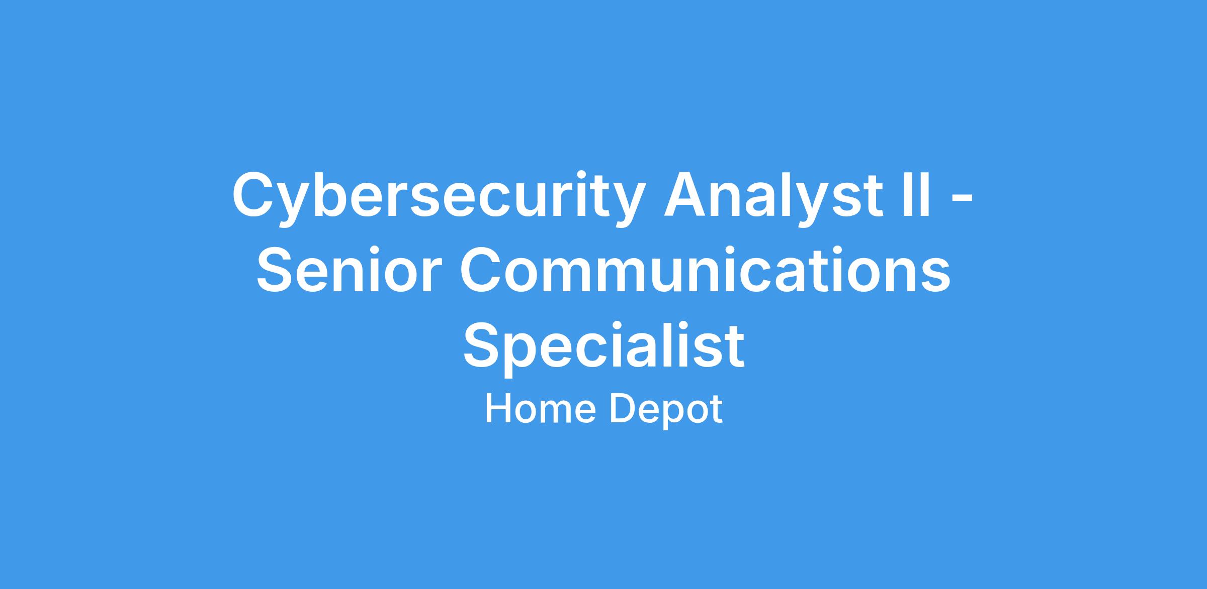 This is a Senior Communications Specialist within our Cyber Security organization. Protecting what matters most to our associates and consumers by securing our sensitive data and critical assets from current and emerging threats. At The Home Depot Cybersecurity consists of Architecture, Governance, Identity & Access Management, Internal Threat Operations, Issue and Compliance Management, Risk Assessment/Advisory, Security Consulting, Security Operations, Service Optimization and Strategic Planning