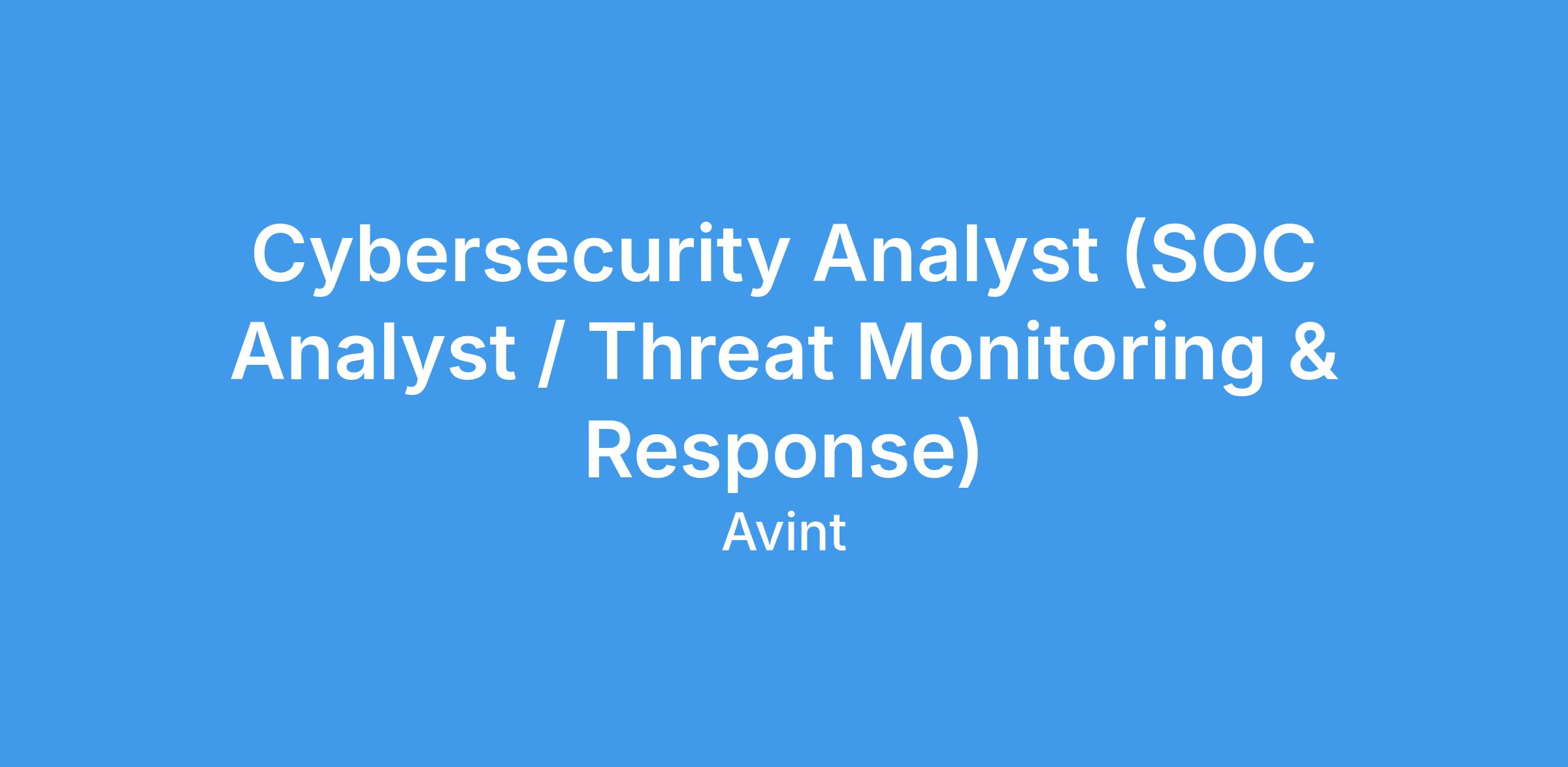 Avint is hiring a Cybersecurity Analyst (SOC Analyst / Threat Monitoring & Response) to support and protect critical systems within the HACS program at FRTIB HQ. In this role, you’ll monitor security events, analyze threats, and support incident response efforts to maintain a strong cybersecurity posture.