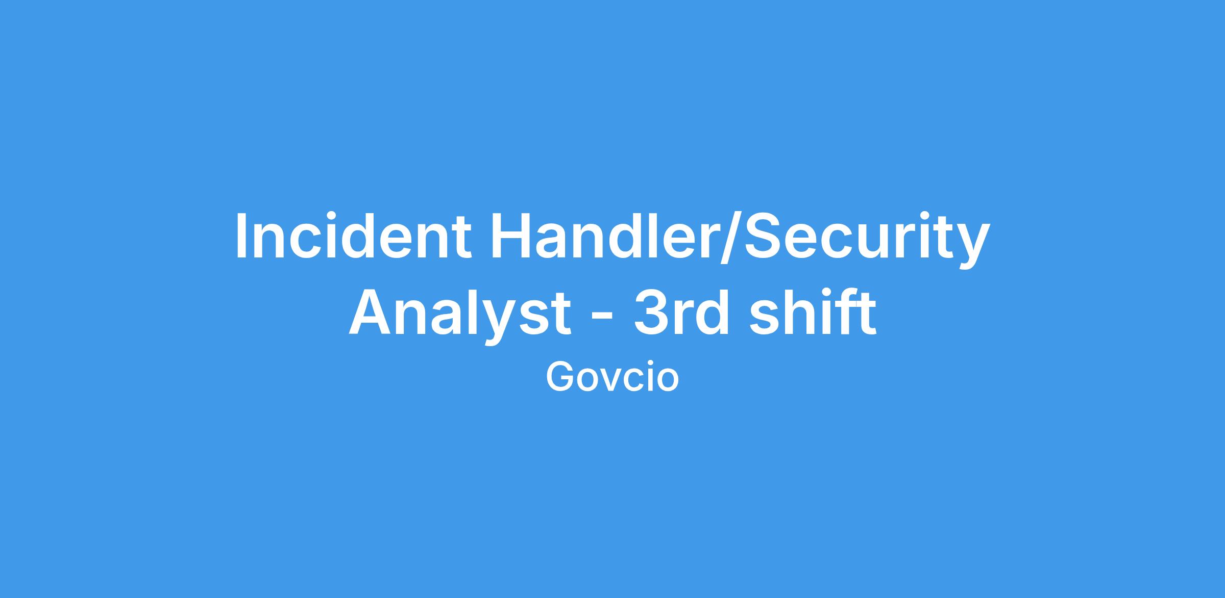 GovCIO is currently hiring for a 3rd shift (11pm - 7:30am) Incident Handler/Security Analyst to support the US Courts in Washington, DC (4 days onsite, Fridays remote).