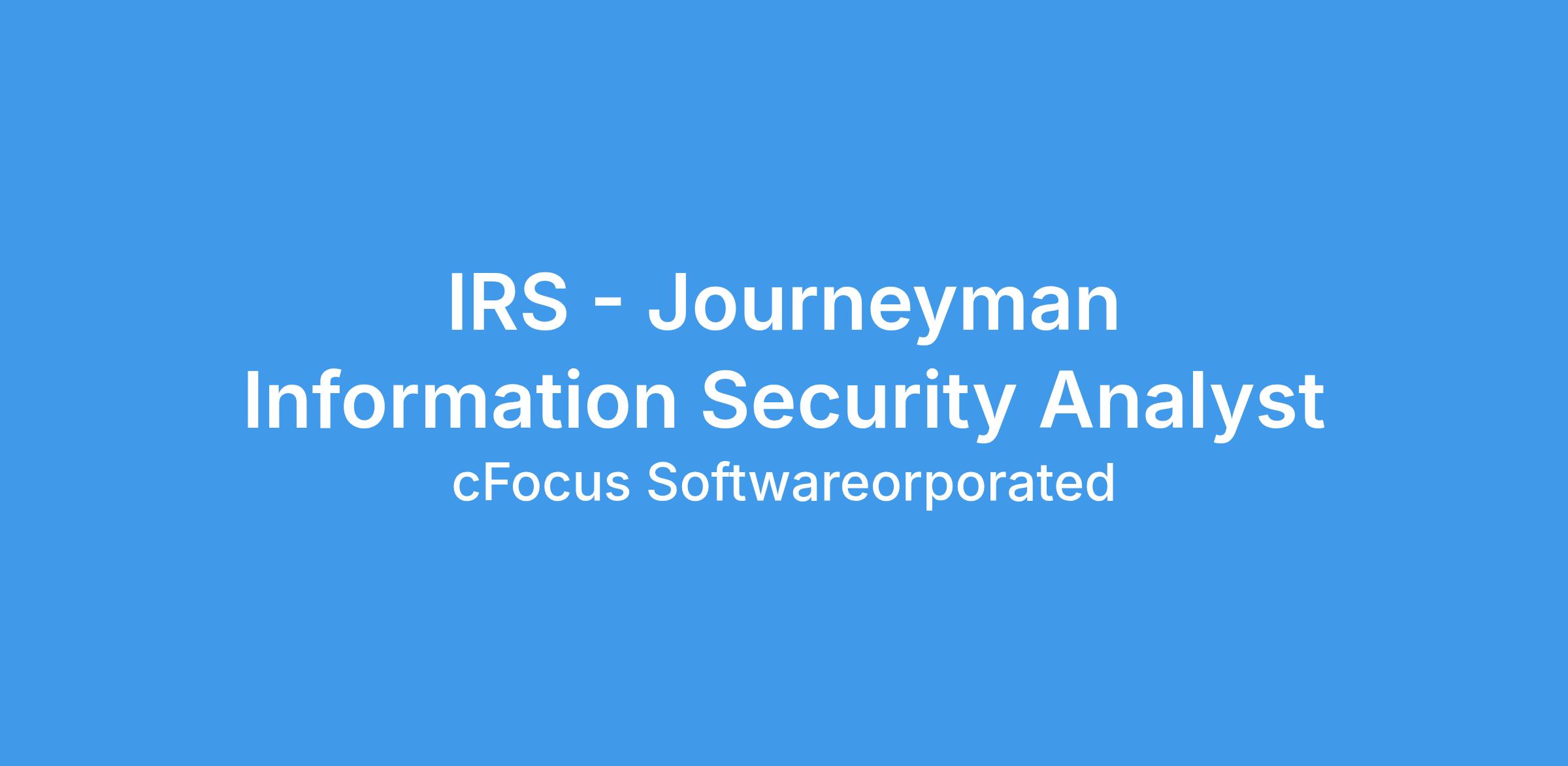 cFocus Software seeks a Journeyman Information Security Analyst to join our program supporting the Internal Revenue Service (IRS). This position is remote. This position requires a Public Trust clearance.Qualifications:- Active Public Trust clearance
