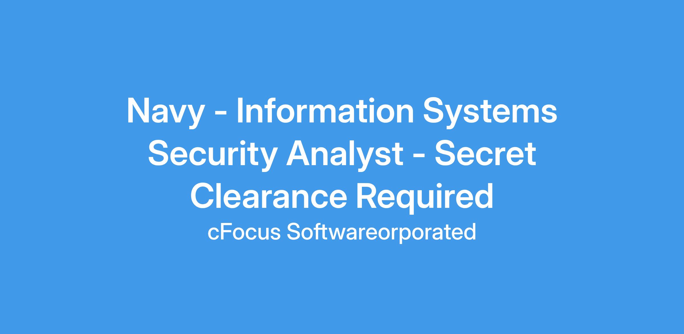 cFocus Software seeks an Information Systems Security Analyst to join our program supporting the Department of Defense (DoD). This position is remote. This position requires the ability to obtain a Secret clearance.Qualifications:- B.S. Computer Science, Information Technology, or a related field