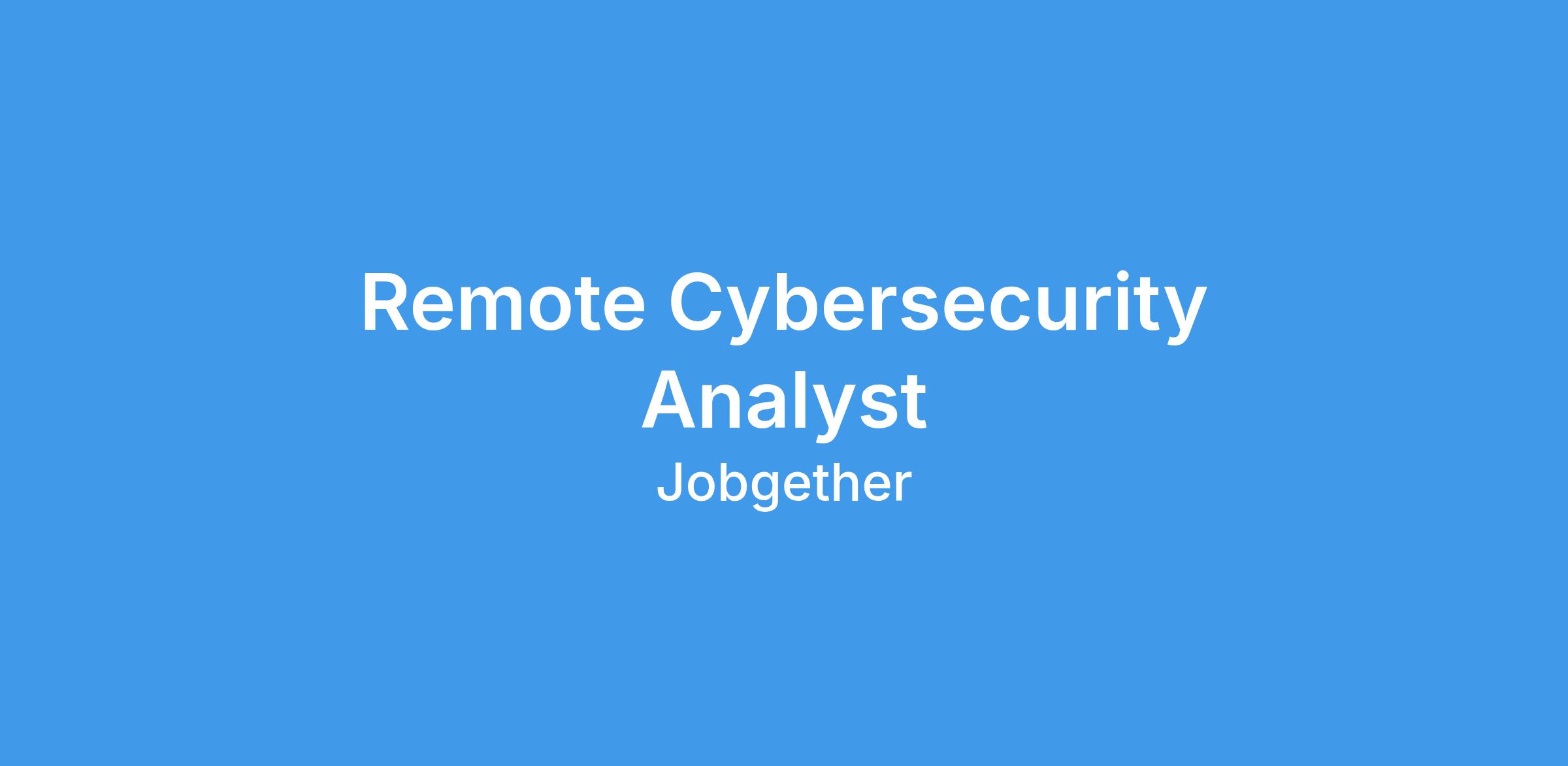 Remote Cybersecurity Analyst