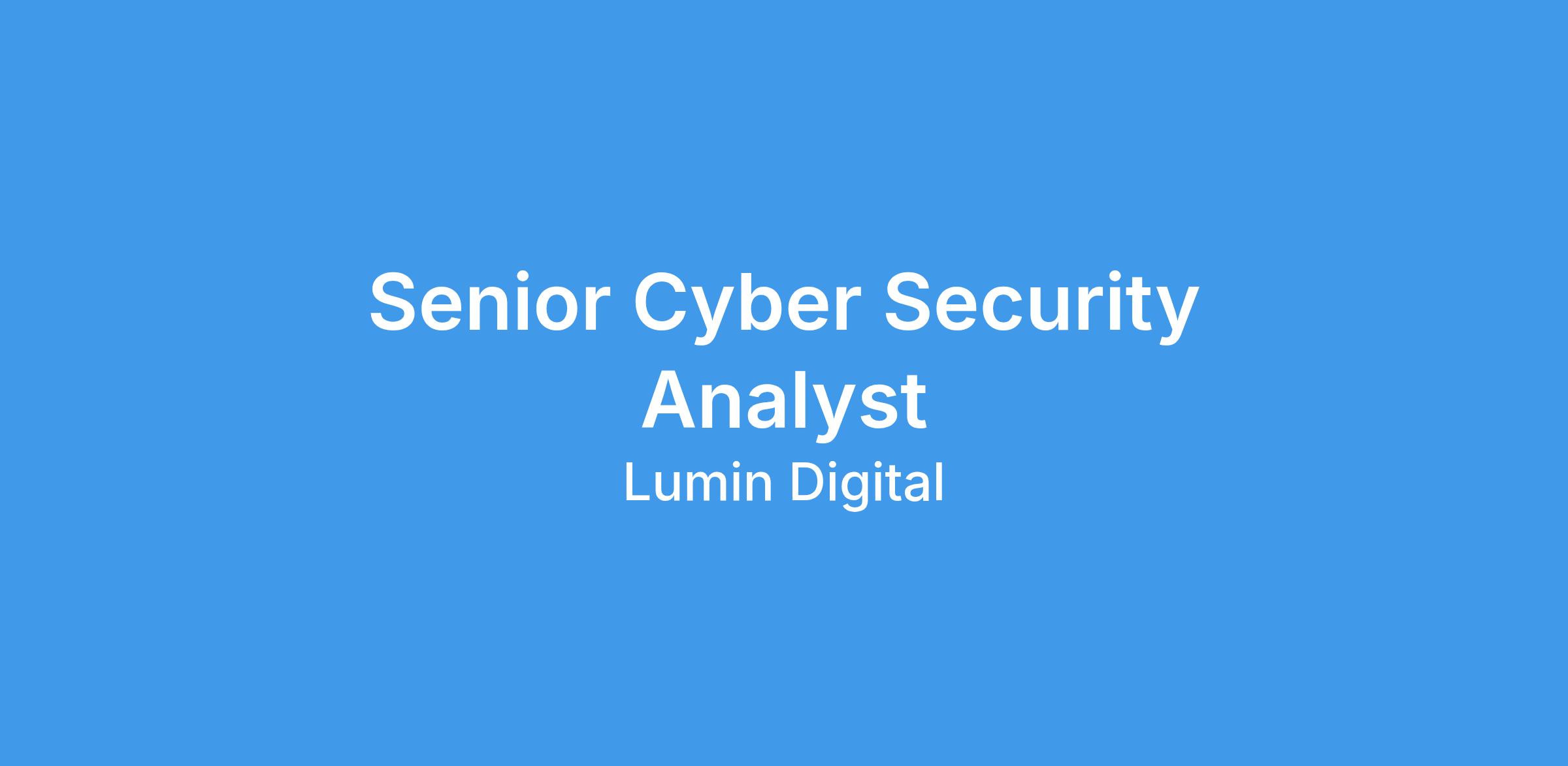The Senior Cyber Security Analyst serves as a senior-level security professional responsible for protecting Lumin Digital’s corporate and public cloud environments that host financial services platforms. This role monitors and evaluates threats to cloud-hosted digital banking solutions, assesses applications and infrastructure for vulnerabilities, and operates technical controls to safeguard sensitive data.