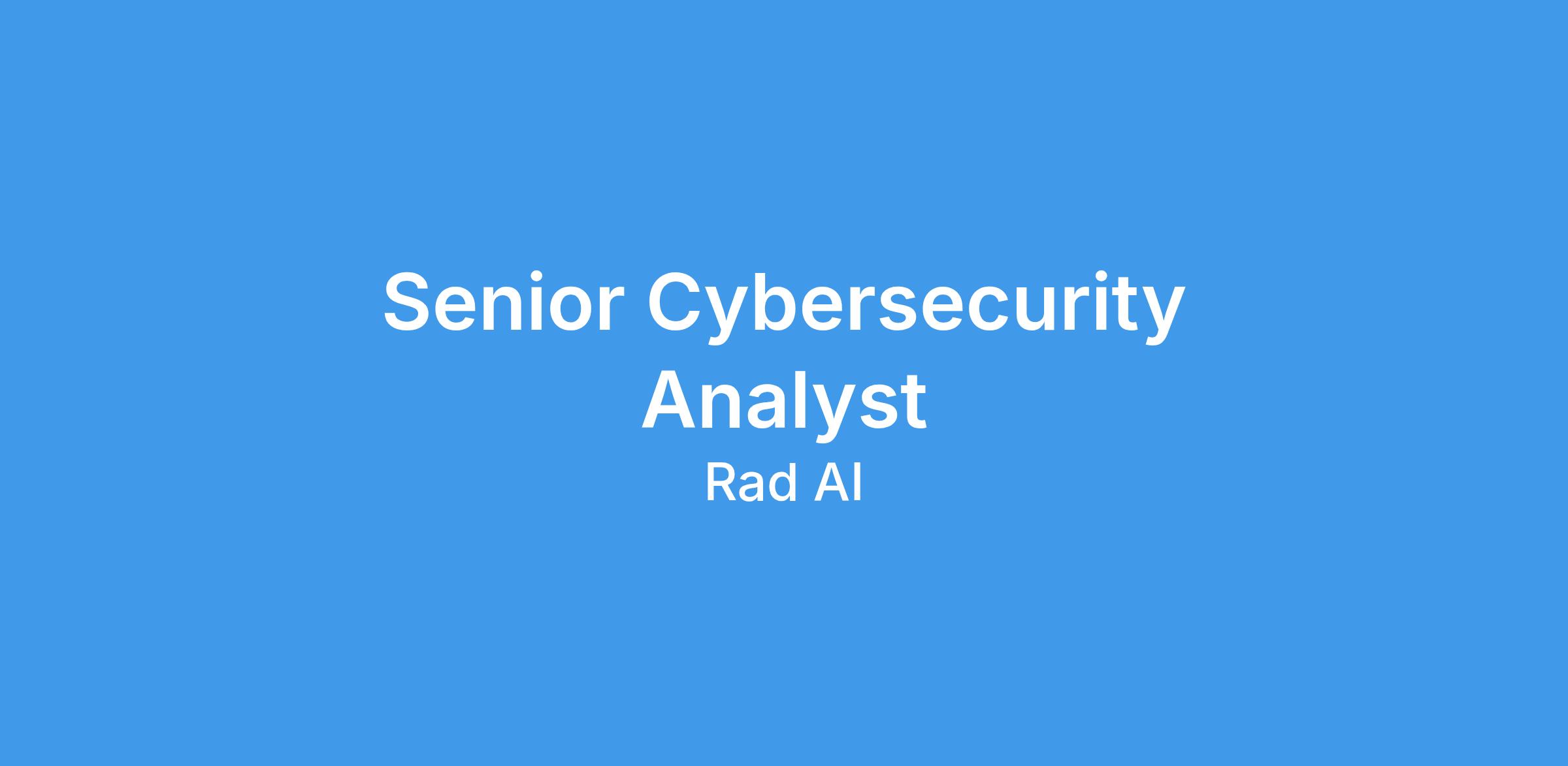 Rad AI is redefining the boundaries of artificial intelligence in healthcare. As our Senior Cybersecurity Analyst, you will play a critical role in securing the company, driving compliance programs, managing risks, and serving as a trusted partner to customers and internal teams alike. This is not a purely technical role: it demands equal parts audit, security expertise, project management discipline, and clear communication. This role will report directly to the Director of IT & Cybersecurity.