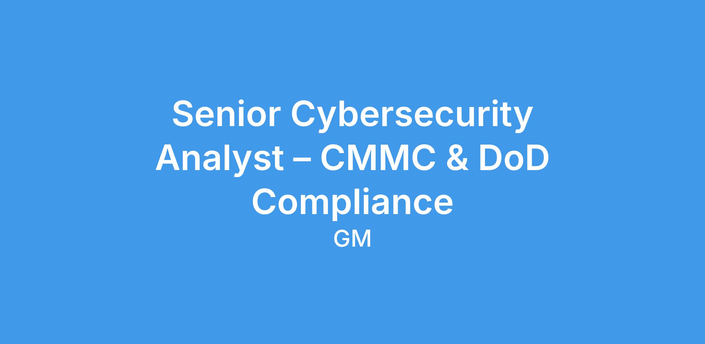 The Cybersecurity Analyst will help lead the CMMC compliance efforts to enable pursuit of new GM Defense and other U.S. Government–regulated programs. This role works with cross‑functional teams to execute and assess control implementation, collect and validate audit‑ready evidence, and prepare artifacts for external assessments. The analyst works with the GMD GRC team and leads IT, program management, cloud, and engineering teams to ensure compliance with CMMC, NIST SP 800‑171, DFARS, FAR, and DoD cybersecurity requirements supporting government contracts.